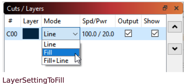 レーザーはカラー印刷ができないので、この色を使って、デザイン中の形状に異なる種類の操作を割り当てるのです。一般的な慣習として、カットには明るい赤を使いますが、色の使い方はあなた次第です。